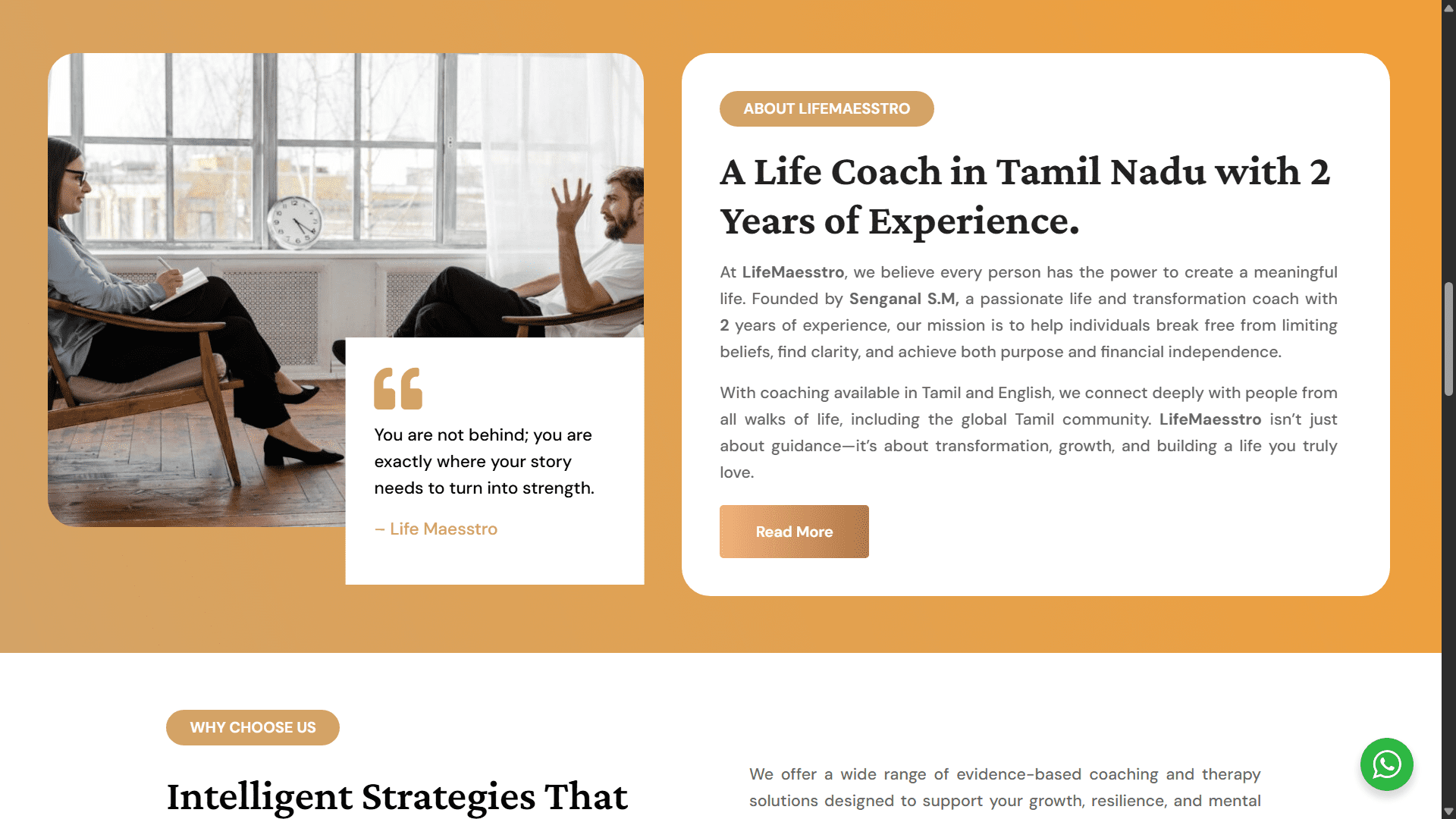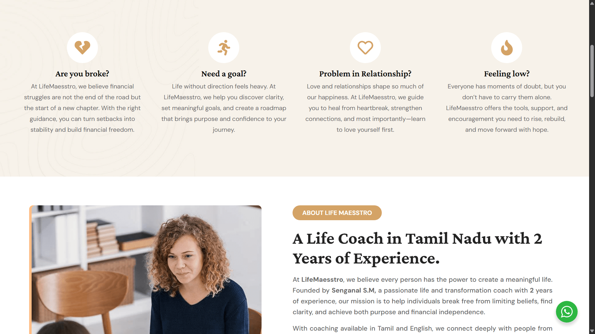 At CraftArchitech, we had the opportunity to collaborate with LifeMaesstro, a growing life coaching brand founded by Senganal S.M, a passionate life and transformation coach from Tamil Nadu. With over two years of experience, he’s been empowering individuals to rediscover clarity, purpose, and financial freedom through personalized coaching sessions.